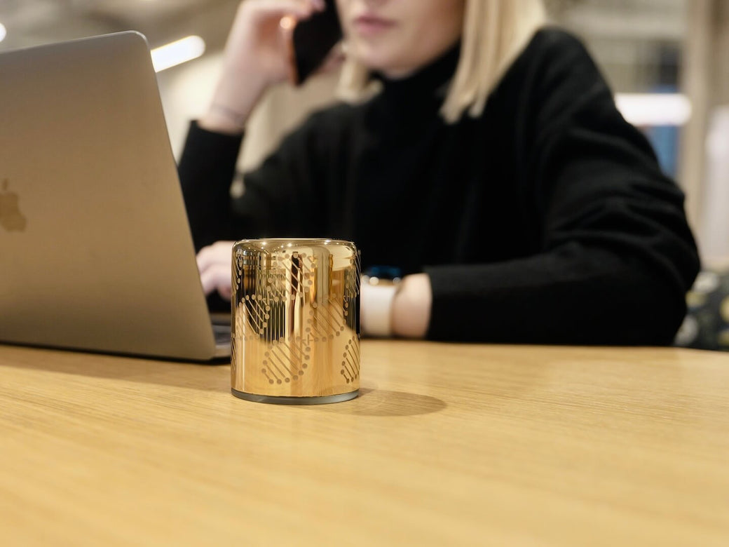 Elaura is not just a design accessory; it is a highly concentrated, next-generation harmonisation system. The glass body, elegantly plated with 24-karat gold, serves as a stable carrier and multiplies the precision of the hand-crafted production. Its internal arrangement creates a highly intensive field adapted to demanding environments, such as modern smart homes, offices, or EV interiors.