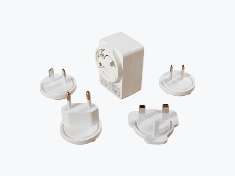 Adaptor de alimentare cu patru mufe interschimbabile pentru compatibilitate la nivel mondial.
